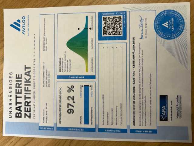 Hyundai KONA EV Prime +Zertifikat SOH 97,2% + Garntie+ 21.900 €MwSt. ausw.VergleichenFavoritDetails 59.000 km11.2021Elektro150 kW/204 PSGrauAutomatikGebrauchtfahrzeug5 TürenNavigationssystem